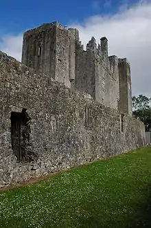 These cantreds or baronies had been expropriated by another (half) first cousin, Ralph Fitz-Stephen (died 1182), the grandson of Nesta by Stephen, Constable of Cardigan. Robert Fitz-Stephen eventually ceded these territories to Philip de Barry, his half-nephew. In 1181, King Henry II of England ennobled Robert de Barry as Baron Barry of Olethan and Ibawne.[5] On 24 February 1206, King John I of England confirmed William de Barry, Philip's son, in the possession of these territories and, by letters patent, conferred on him the Lordships of Castlelyons, Buttevant and Barry's Court in East Cork.[6] In 1267, King Henry III of England appointed Lord David de Barry as Chief Justice of Ireland.[7] Another member of the family, William de Barry, was justice in eyre 1289-94. In 1385, King Richard II of England raised John Barry to the viscountcy as Viscount Buttevant.[8] In 1627, King Charles I of England elevated David Barry as Earl of Barrymore.[9]