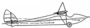 The DH.52[1][2] was de Havilland's only glider, built to compete for the £1,000 (equivalent to £58,094 in 2021) prize in the Daily Mail Gliding Competition, held at Itford, Sussex in 1922. It was a high-wing monoplane with an aspect ratio of 11.4; the wing was wire braced, with pairs of wires from the keel to the front and rear wing spars at about ⅓ and ¾ span. Similar pairs of wires to a central king post supported the weight of the wings and kept the bracing in tension. The kingpost consisted of two members, one from each wing spar at the centre line, meeting about 2 feet 9 inches (0.84 m) above the wing. The resulting triangular structure appears to have been covered with cambric. Unbalanced ailerons with an unusually large angular travel were fitted, in order to maintain control at low speeds.[1]