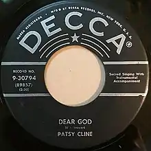 5. 1 2 Cline, Patsy (December 13, 1958). ""Dear God"/"He Will Do For You" (7" vinyl single)". Decca Records. 30794A.