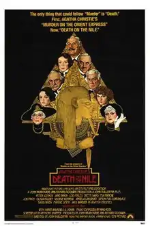 Death on the Nile is a 1978 British mystery film based on Agatha Christie's 1937 novel of the same name, directed by John Guillermin and adapted by Anthony Shaffer.[4] The film features the Belgian detective Hercule Poirot, played by Peter Ustinov for the first time, plus an all-star supporting cast that includes Maggie Smith, Angela Lansbury, Bette Davis, Mia Farrow, Jane Birkin, David Niven, George Kennedy, and Jack Warden. The film is a follow-up to the 1974 film Murder on the Orient Express.