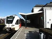 Delfzijl (Dutch pronunciation: [dɛl(ə)fˈsɛil] ; abbreviation: Dz) is a railway station in Delfzijl, Netherlands. It is located on the Groningen–Delfzijl railway after Delfzijl West as the terminus for passengers. The railway line continues further east, but only for freight trains. The station building was completed in 1883 and train services started on 15 June 1884. The trains are currently operated by Arriva.