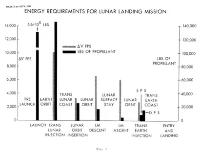 - ↑ "Delta-V Calculator". Archived from the original on March 12, 2000. Gives figures of 8.6 from Earth's surface to LEO, 4.1 and 3.8 for LEO to lunar orbit (or L5) and GEO resp., 0.7 for L5 to lunar orbit, and 2.2 for lunar orbit to lunar surface. Figures come from Chapter 2 of Space Settlements: A Design Study on the NASA website.