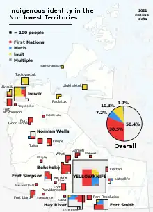 The 2021 census reported that immigrants (individuals born outside Canada) comprise 4,145 persons or 10.3 percent of the total population of the Northwest Territories.[13]