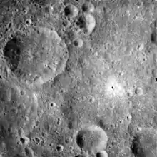 Apollo 15 image showing Denning to the upper left. Note the high-albedo crater at right center. NASA photo.