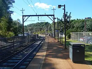 NJ Transit rail service is available at the Denville station, a large three-platform station serving both the Morristown and the Montclair-Boonton train lines, with service to Hoboken Terminal or to Penn Station in Midtown Manhattan via Midtown Direct.