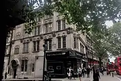 The Department of Classics is located on the historic Strand. It occupies a set of buildings at the corner of Surrey Street which are linked internally through a series of corridors and staircases. 169 Strand was purpose-built for College use in 1928 above the disused Strand station and features the old King's coat of arms on its facade. The Royal Strand Theatre stood on this site from 1832 until its demolition in 1905. 170 Strand contains offices, teaching rooms and the department common room with a balcony overlooking the street. 171 Strand is a corner house with retail operating on ground floor level. Academic offices extend along 39 to 41 Surrey Street.[27][37]