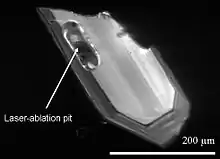 - ↑ Hirata, T.; Nesbitt, R. W. (1995). "U-Pb isotope geochronology of zircon: Evaluation of the laser probe-inductively coupled plasma mass spectrometry technique". Geochimica et Cosmochimica Acta. 59 (12): 2491–2500. Bibcode:1995GeCoA..59.2491H. doi:10.1016/0016-7037(95)00144-1.