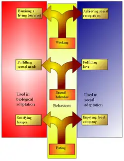 On the social-environmental side, role theory[27] defines the role as a set of connected behaviors, rights and obligations as conceptualized by actors in a social situation. Thus, roles can be: