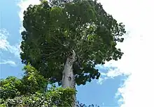 Dinizia jueirana-facao is a tree in the family Fabaceae which grows in a restricted area of rainforest in Espírito Santo state in Brazil. It was first described by G. P. Lewis & G. S. Siqueira in 2004.[2][3] Its specific name derives from its local name, "jueirana-facão".[4] There are currently fewer than 25 specimens in existence, making the species critically endangered.[2][1]