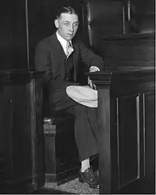 As McPherson's accused lover who allegedly assisted in the kidnapping fraud, Ormiston was a prominent defendant in the 1926 grand jury inquiry. He had been McPherson's radio operator and was crucial in getting her programs on the air. He was described as about 5 feet 11 inches (180 cm) tall, bald, slender, and good-natured with a wonderful disposition.[98] He also had a distinctive limp that frequently identified him more than any other feature. During the time of McPherson's disappearance, newspapers freely speculated about him and the Los Angeles DA office initiated various manhunts accompanied by front-page headlines, searching for the elusive radioman.[99] Though the Los Angeles prosecution and two city newspapers spent lavishly to romantically connect McPherson with Ormiston, no conclusive evidence that they were lovers could be uncovered.[100] To some law enforcement officials outside of Los Angeles, the pursuit of Ormiston was done for publicity.[101][102][103]