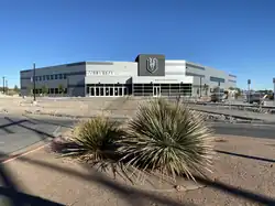 The Dollar Loan Center is a multi-purpose indoor arena in Henderson, Nevada. Built on the site of the former Henderson Pavilion, it is the home of the Henderson Silver Knights of the American Hockey League, the Vegas Knight Hawks of the Indoor Football League and the NBA G League Ignite of the NBA G League.[3] The City of Henderson is the building owner with the National Hockey League's Vegas Golden Knights as its operator.[4] The Dollar Loan Center seats 5,567 for hockey and football.[5] Initially called the Henderson Event Center, on March 30, 2021, the Golden Knights and Silver Knights announced a naming rights partnership with Dollar Loan Center, a Las Vegas-based short-term loan company, for the arena to be called The Dollar Loan Center.[6] The name of the arena is disambiguated with the article "The" to differentiate it from the company.[7]