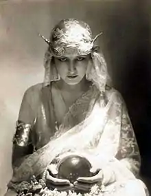 Dolores with a Mercury headdress and a crystal ball in a wedding dress spread for Vogue, 1919. Photographer: Adolph de Meyer.