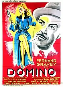 Domino is a 1943 French drama film directed by Roger Richebé and starring Fernand Gravey, Simone Renant and Aimé Clariond. It is based on the 1932 play of the same title by Marcel Achard.[1] It was shot at the Saint-Maurice Studios in Paris. The film's sets were designed by the art director Lucien Carré.