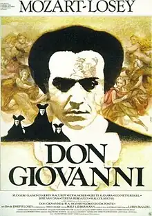 Don Giovanni is a 1979 French-Italian film directed by Joseph Losey. It is an adaptation of Mozart's classic 1787 opera Don Giovanni, based on the Don Juan legend of a seducer, destroyed by his excesses. The opera itself has been called one of Mozart's "trio of masterpieces". The film stars Ruggero Raimondi in the title role, and the conductor is Lorin Maazel. Nearly three decades after the film's release, Nicholas Wapshott called it a "near perfect amalgamation of opera and the screen".[2][3]