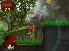 Donkey Kong Jungle Beat[lower-alpha 1] is a 2004 platform and score-attack game developed and published by Nintendo for the GameCube. It follows the gorilla Donkey Kong as he sets out to defeat a series of evil kings to conquer the jungle. Jungle Beat is designed for use with the DK Bongos, a bongo drum-style GameCube controller created for the Donkey Konga (2003) rhythm game. The player controls Donkey Kong through various side-scrolling levels as he collects bananas, swings on vines, chains combos, rides animals, and defeats enemies and bosses.