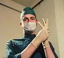 Adams in his first Monty Python appearance, in full surgeon's garb