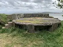 It was important to ensure that coast defence batteries were not put out of action by enemy troops landing and attacking them from the landward side. The Downing Point battery was surrounded by both a plain wire fence and a barbed wire entanglement that ran out onto the beach along the northern side. There were also four blockhouses within the perimeter.