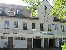 Of the six Freital stations, Freital-Potschappel station is the most important.[29] The Niederhermsdorfer Kohlezweigbahn ("Niederhermsdorf coal branch railway") branched off here to two coal shafts from 1856 onwards. Its route was used in the construction of the 750 mm gauge Potschappel–Wilsdruff railway opened in 1886. Extensive goods and transhipment facilities were built In Potschappel, which were further expanded during the elevation of the line and its quadruplication after 1900.[30]
