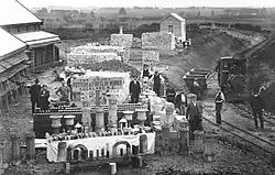 Coal mining was a significant early industry established in Drury during the 1850s, and saw the formation of the Waihoihoi Mining and Coal Company in 1859.[6] Continued success with coal mining led to the opening of one of New Zealand's earliest tramways by the company in 1862, consisting of 4ft 8in gauge track with a length of 5.2km, whereby coal was transported to Slippery Creek for shipment to Onehunga.[7] Another early industry seen in Drury was that of an extensive brick and pottery works, linked to a nearby quarry by a tram line at the foot of the Drury Hills.[8] The brick and pottery industry in Drury appears to have operated until at least 1928.[9]