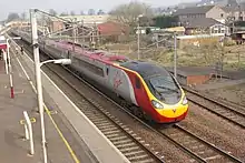 A Virgin Pendolino leaving Lockerbie station for Carlisle