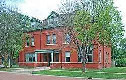 The office building is a three-story red-brick rectangular structure, measuring 40 feet by 60 feet, on a brick foundation with a full basement.[4] The windows are sixteen-over-one wood-sash windows in a flat-arched surround.