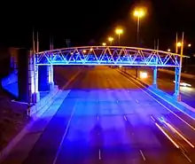 Vehicles are identified electronically without any cash transactions taking place on the road or highway.[1] Vehicle identification is facilitated by an e-tag or a vehicle license plate number which is recorded by overhead cameras installed on gantries, and interpreted by computer. Electronic Toll Collection (Pty) Ltd (ETC), a subsidiary of Kapsch TrafficCom AG,[13] is the contracted company that designed, built and is still operating the system,[14] and in turn oversees the Transaction Clearing House (TCH) which oversees customer accounts, and the Violation Processing Centre (VPC) which will follow procedures against payment defaulters.[15]