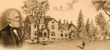 The E. B. Morgan House at 431 Main Street, Aurora, New York, was designed in the Italianate style by New York architect Joseph C. Wells for Edwin Barber Morgan, a wealthy entrepreneur and U.S. Congressman. Built between 1857 and 1858, the mansion expressed the new wealth of businessmen in Central New York. Their innovative companies had operations extending to California and the South. The mansion is a contributing property within the Aurora Village–Wells College Historic District, listed in 1980 on the National Register of Historic Places.[2]