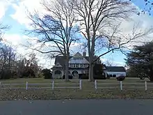 Dietrich designed his own home in the Colonial Revival style. Completed in the spring of 1891,[10] "Sandanona" stood on Bay Parkway in Bensonhurst-by-the Sea, a private community on the shore of New York's Lower Bay. An early proponent of the Colonial Revival style, his designs predated the 1893 World's Columbian Exposition credited with popularizing the style. While the overall massing of the houses Dietrich designed in this style appear ordered and symmetrical, the asymmetrical floorplans are a continuation from his Shingle Style work. As was typical for the time, Dietrich worked in both styles often blurring style boundaries and combining elements of each.