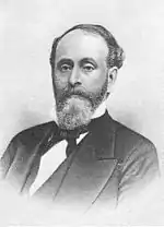 Ebenezer O. Grosvenor was a politician who served in the Michigan Senate, one term as the Lieutenant Governor of Michigan, and two terms as the State Treasurer of Michigan.[2] He arrived in Jonesville in 1840, establishing a store and a bank in the town.[3] Grosvenor had this house constructed in 1874 from plans drawn by Elijah E. Myers.[2] Ebenezer Grosvenor lived in this house until his death in 1910.[4] After his death, four generations of Grosvenors lived in the house, after which it was turned into a rooming house.[3]