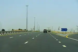 E 44 (Arabic: إ ٤٤) is one of the main roads of the United Arab Emirates (UAE). The road connects the city of Dubai to the town of Hatta, an exclave of the emirate of Dubai. E 44 assumes multiple names; in Dubai, the road is named Al Khail Road, between E 311 and D 68, Ras al Khor Road between D 68 and E 311, Al Aweer Road between E 311 and E 77, and Dubai-Hatta Highway for the rest of the road.[1] E 44 is disconnected in Al Madam by Al Rawdah region of Oman; the road reconnects in Masfout, runs to Hatta and ends in at Hatta Border Crossing .[2]
