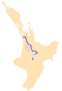 The Waikato River rises in the eastern slopes of Mount Ruapehu and flows through the Tongariro River system and Lake Taupō, New Zealand's largest lake, before running 400 kilometres though the Waikato Plains until it empties into the sea at Port Waikato. The river and its tributary Waipā River, joining at Ngāruawāhia, took the British forces right into the heart of the war. Some of the river ships went up as far as (now) Cambridge on the Waikato and almost to Pirongia on the Waipa (using present place names).