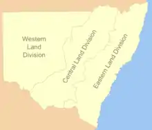 The Eastern Division of New South Wales is one of the three divisions of New South Wales along with the Central and Western divisions, established under the Crown Lands Act of 1869 for the purposes of land management and the separation of metropolitician and rural/regional areas. It is the most populated of the divisions, including Sydney and large coastal cities such as Newcastle and Wollongong. In 1907 it included the Armidale, Port Macquarie, Grafton, Maitland,Dungog, Scone, the Blue mountains, Sydney, Goulburn, Lismore, Coffs Harbour and Orange land boards, as well as the eastern part of the Wagga Wagga, Dubbo and Tamworth land boards.[1]