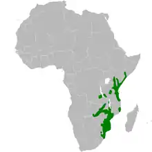 The eastern nicator (Nicator gularis) is a species of songbird in the family Nicatoridae. It is found in Eswatini, Kenya, Malawi, Mozambique, Somalia, South Africa, Tanzania, Zambia, and Zimbabwe. Its natural habitats are subtropical or tropical dry forests, dry savanna, and subtropical or tropical moist shrubland. It occurs south to around Mtunzini in northern KwaZulu-Natal, South Africa, and is regularly reported from lowland areas north through to east Africa, including inland areas along the Zambezi River.[2]