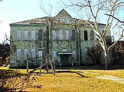 By 2015, a portion of the roof framing and part of the second story wall had collapsed.[7] Two-ton concrete anchors were used with cables attached to the exterior walls to brace the structure.[8] The City of Hattiesburg and MDAH provided funding to stabilize the school building, and the city intended to apply for grants to restore the structure.[9][10]
