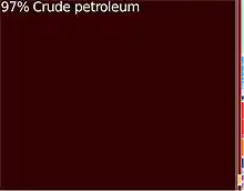 Exports in 2004 reached US$10,530,764,911. The vast majority of Angola's exports, 92% in 2004, are petroleum products. US$785 million worth of diamonds, 7.5% of exports, were sold abroad that year.[42] Nearly all of Angola's oil goes to the United States, 526 kbbl/d (83.6×103 m3/d) in 2006, making it the eighth largest supplier of oil to the United States, and to China, 477 kbbl/d (75.8×103 m3/d) in 2006. In the first quarter of 2008, Angola became the main exporter of oil to China.[43] The rest of its petroleum exports go to Europe and Latin America.[36] U.S. companies account for more than half the investment in Angola, with Chevron-Texaco leading the way. The U.S. exports industrial goods and services, primarily oilfield equipment, mining equipment, chemicals, aircraft, and food, to Angola, while principally importing petroleum. Trade between Angola and South Africa exceeded US$300 million in 2007.[44] From the 2000s, many Chinese have settled and started up businesses.[45]