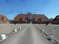 The main building is located on the west side of a larger courtyard which is surrounded by farm buildings (Avlsgården) on its three other sides. The farm buildings mostly date from 1866 but integrate remains of the Bjelke's original half-timbered farm buildings. The man building is listed. The farm buildings are not listed. A driveway lined by white-painted boulders runs across this courtyard.[6]