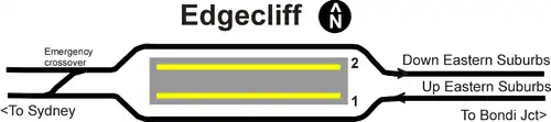 Although not directly mentioned in projects associated with the Rail Clearways Program, work was taken out at Edgecliff as a part of the Bondi Junction Turnback project. This involved the motorisation and signalling of an emergency crossover located at the western end of the station. Previously it had not been possible to ordinarily terminate trains at Edgecliff. When completed in September 2004 it permitted trains to terminate at Edgecliff and return towards the city. This was necessary to allow the closing of Bondi Junction station while major work was carried out there but allowing the line to otherwise remain open.