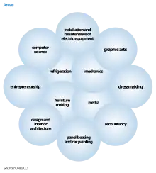 Technical and vocational training (TVET) addresses multiple demands of an economic, social and environmental nature by helping young people and adults to develop the skills they need for employment, decent work and entrepreneurship, promoting equitable, inclusive and sustainable economic growth, and supporting transitions to green economies and environmental sustainability.[13]