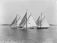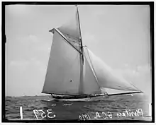 In 1886, his Mayflower, slightly larger than Puritan, led in the race with the English Galatea. In 1888, Burgess' fishing schooner Carrie E. Phillips outdistanced four competitors in the fisherman's race held in Boston harbor. His Volunteer won the America's cup against the Thistle in 1887. His other yachts included the Mariquita and Gossoon, both remarkably swift sloops designed to counter the success of the Clyde-built cutter Minerva (William Fife, 1888).[5]