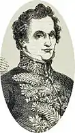 In 1822 Edward Stanley, as he was then, was elected to Parliament in the rotten borough of Stockbridge as a Whig, the traditional party of his family.[6] In 1824, however, he alienated some of his Whig colleagues by voting against Joseph Hume's motion for an investigation into the established Protestant Church of Ireland.[7] He lost his seat in 1826. When the Whigs returned to power in 1830, Stanley became Chief Secretary for Ireland in Lord Grey's Government, and entered the Cabinet in 1831. As Chief Secretary Stanley pursued a series of coercive measures which frequently brought him into conflict with the Lord Lieutenant of Ireland, Lord Anglesey.[8] In October 1831, Stanley wrote a letter, the Stanley Letter, to the Duke of Leinster establishing the system of National Education in Ireland. This letter remains today the legal basis for the predominant form of primary education in Ireland.[9] In 1833, Stanley moved up to the more important position of Secretary of State for War and the Colonies, overseeing the passage of the Abolition of Slavery Bill.[10]