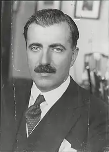 Lord Stanley was first elected to Parliament on 28 June 1917 in a by-election in Liverpool Abercromby. He left Parliament the following year, when the seat was abolished for the 1918 general election.[17] During this time, he was the Baby of the House. He returned to Parliament in the 1922 general election when he was elected for Fylde.[18] He served under Stanley Baldwin as a Junior Lord of the Treasury from 1924 to 1927 and was a Deputy Chairman of the Conservative Party from 1927 to 1929.