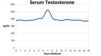 Testosterone levels in males have been shown to vary according to the ovulating state of females. Males who were exposed to scents of ovulating women recorded higher testosterone levels than males who were exposed to scents of nonovulating women.[3] Being exposed to female ovulating cues may increase testosterone, which in turn may increase males' motivation to engage in, and initiate, sexual behaviour. Ultimately, these higher levels of testosterone may increase the reproductive success of males exposed to female ovulation cues.