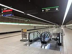 ![]() Mezzanine of El Perchel station, with escalator leading down to the platforms | |