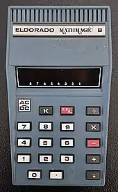 Brite's prototype eventually came to fruition as the Models 8K and 8M, introduced in March 1972 and priced under $180 each.[16] Brite and Wrathall had by this point sold the company back to its original owners, breaking even with their combined cost of buying the company.[11] Eldorado announced three more calculators by the middle of 1972, including the Touch Magic, "no bigger than a pack of cigarettes" according to Administrative Management.[17]