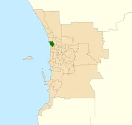 The district boundaries were redistributed in 2019 and saw the suburbs of North Beach and Gwelup being removed while the suburb of Sorrento was added.[1]