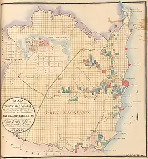 Gloucester and Macquarie was an electoral district of the Legislative Assembly in the Australian state of New South Wales in the first and second Parliaments (1856-1859), named after Gloucester and Macquarie counties on the Mid North Coast. It was abolished in 1859 with Macquarie, the north-east of Gloucester and the Macleay River area forming the new district of Electoral district of Hastings (New South Wales), while the rest of Gloucester was split between Lower Hunter, Northumberland and The Williams.[1]