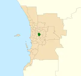 In the 2007 redistribution, the seat lost Cannington, Queens Park, Wilson and parts of Welshpool, while gaining parts of Kensington and all sections of East Victoria Park west of Berwick Street and Hill View Terrace which had been allocated to South Perth in the previous redistribution.[5]