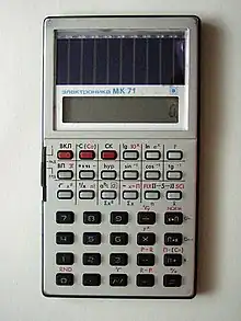 Elektronika, also spelt Electronika and Electronica (Russian: Электроника, "Electronics"), is the brand name used for many different electronic products built by factories belonging to the Soviet Ministry of Electronic Industry, including calculators, electronic watches, portable games, and radios. Many Elektronika designs were the result of efforts by Soviet engineers, who were working for the Soviet military–industrial complex but were challenged with producing consumer goods that were in great shortage in the Soviet Union.[1] The brand is still in use in Belarus.