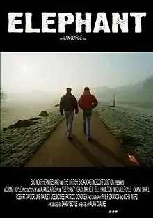 Elephant is a 1989 British short film directed by Alan Clarke and produced by Danny Boyle. The film is set in Northern Ireland during the Troubles and its title comes from Bernard MacLaverty's description of the conflict as "the elephant in our living room" — a reference to the collective denial of the underlying social problems of Northern Ireland. Produced by BBC Northern Ireland, it first screened on BBC2 in 1989. The film was first conceived by Boyle, who was working as a producer for BBC Northern Ireland at the time.[1]