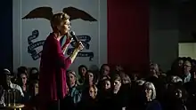 Warren was named as part of the "Hell-No Caucus" by Politico in 2018, along with Senators Cory Booker, Kirsten Gillibrand, Kamala Harris, and Bernie Sanders, given she voted "overwhelmingly to thwart his [Trump's] nominees for administration jobs", such as with Rex Tillerson, Betsy DeVos, and Mike Pompeo; all of the Senators in this group were considered potential 2020 presidential contenders at this point in time.[27] At a town hall meeting in Holyoke, Massachusetts on September 29, 2018, Warren said that "[a]fter November 6, I will take a hard look at running for president", referencing the date of the 2018 United States elections.[28][29]